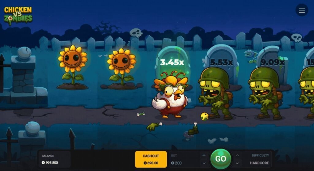 Chicken vs Zombies est une variante officielle d’InOut Games encore plus intéressante. Cette déclinaison remplace les véhicules par des hordes de zombies, créant une atmosphère horrifique décalée. Le gameplay reste identique, mais l’univers visuel apporte une fraîcheur bienvenue. Cette version plaira aux amateurs de thématiques alternatives qui souhaitent conserver la mécanique éprouvée de Chicken Road 2 tout en changeant d’ambiance.